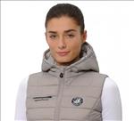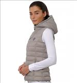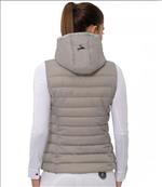 Steppelt női mellény, csillogással a kapucni mentén.