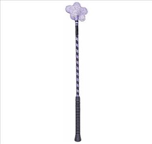 Csillámmal borított lovaglópálca, virágos véggel.