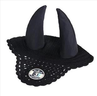 Fülvédő, elasztikus anyagú fülekkel, sötétkék színben.
