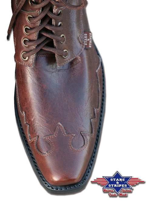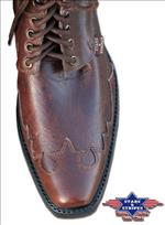 Fűzős western cipő. Valódi marhabőrből készült. Csúszásmentes talprésze, varrásai ellenállóak, igényesen kidogozottak. Barna és fekete színben kapható.
