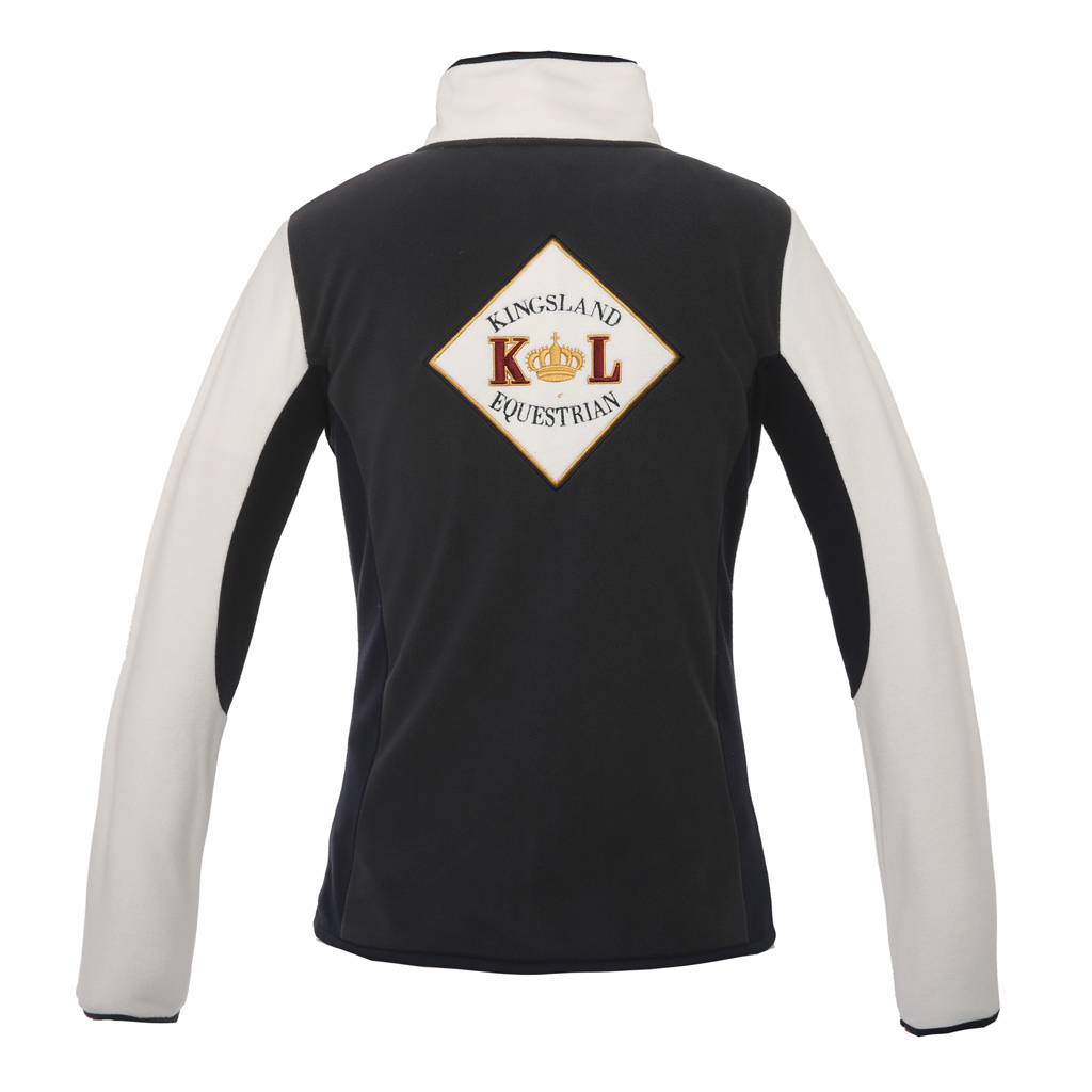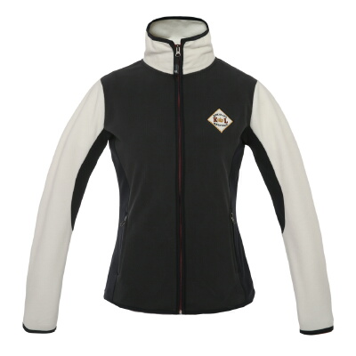 Polár anyagú női felső, kontrasztos színekkel, elején, hátán emblémával.
