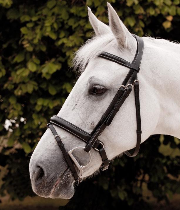 Kantár a Dy'on "working" kollekciójából. Minőségi bivalybőrből készült. Fejrésze széles, anatómiailag formázott. Orr- és homlokrésze szintén bélelt. Több helyen, erős fém csatokkal állítható. Krém színű finom hímzés teszi még elegánsabbá.
