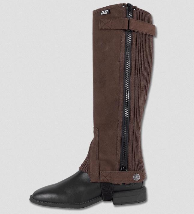 Waldhausen lábszárvédő szintetikus anyagból, erős cipzárral, rugalmas betéttel és tépőzár erősítéssel. 40°C-on mosható.