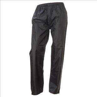 Unisex esőnadrág. Kivágott rész az alatta lévő nadrág zsebeinek. Tépőzár a bokánál.