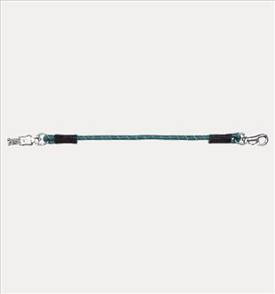 Gumis kikötőszár pánik- és normál karabinerrel. Praktikus lószállítóban, istállóban.