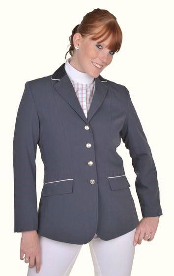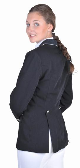 Versenyzakó / HKM / női. Karcsúsított zakó, bársony gallérral, hátul két hasítékkal. Anyaga 100 % polyester. Mosógépben 30 fokon mosható.