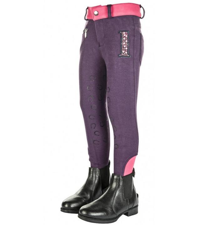 Patkó mintázatú grippel ellátott elasztikus nadrág, bal oldalán kövekkel kirakott számmal.