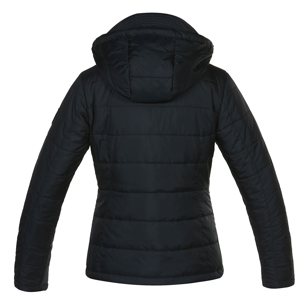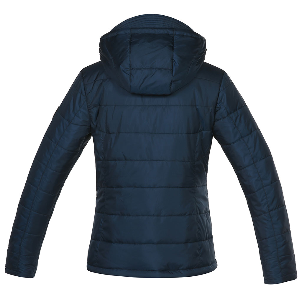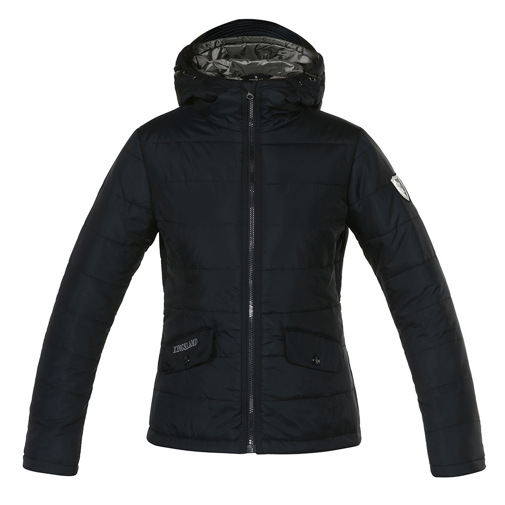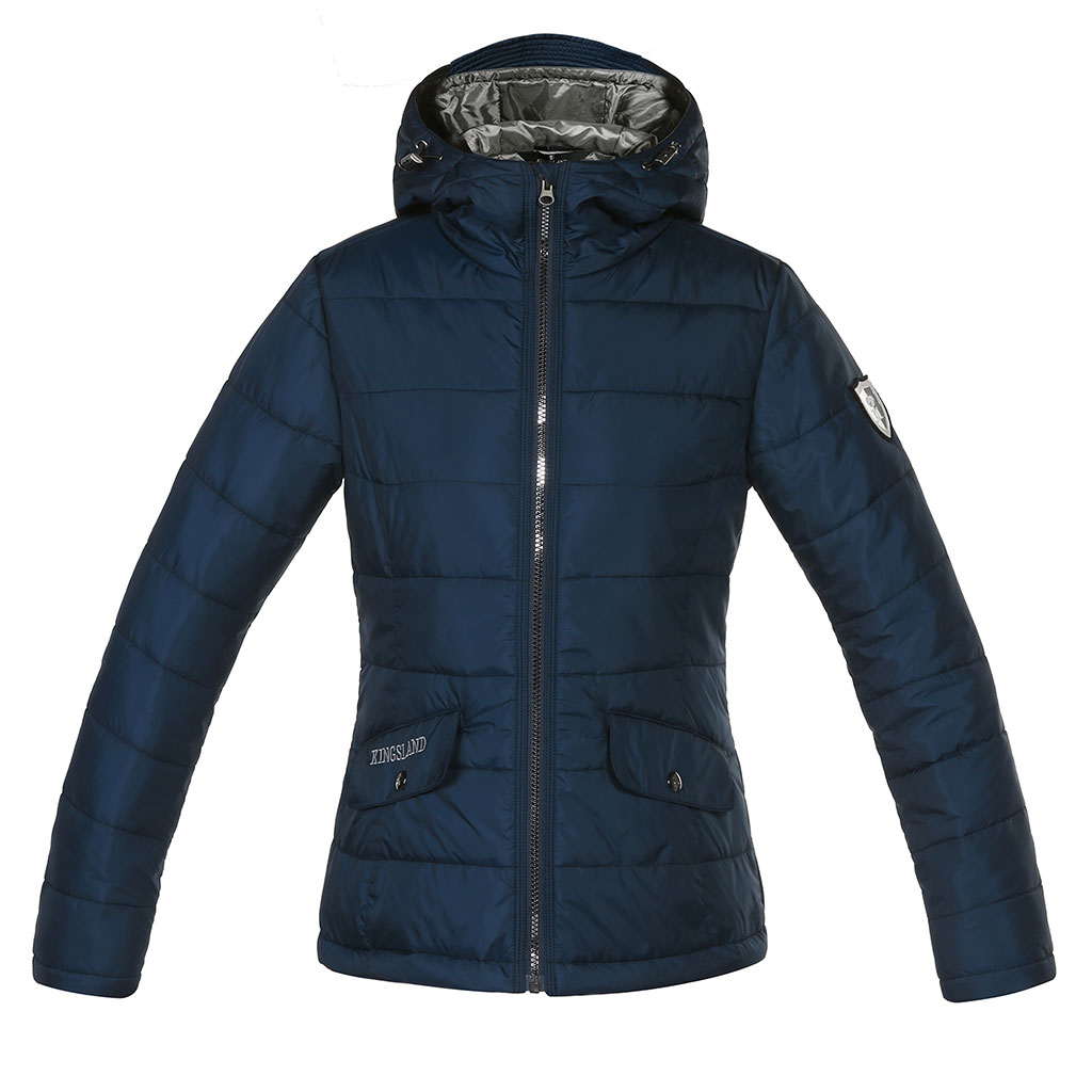 Karcsúsított, kapucnis női dzseki a Kingslandtől, karján emlémával ellátva. Elegáns és egyben sportos is. Anyaga: 100% poliészter