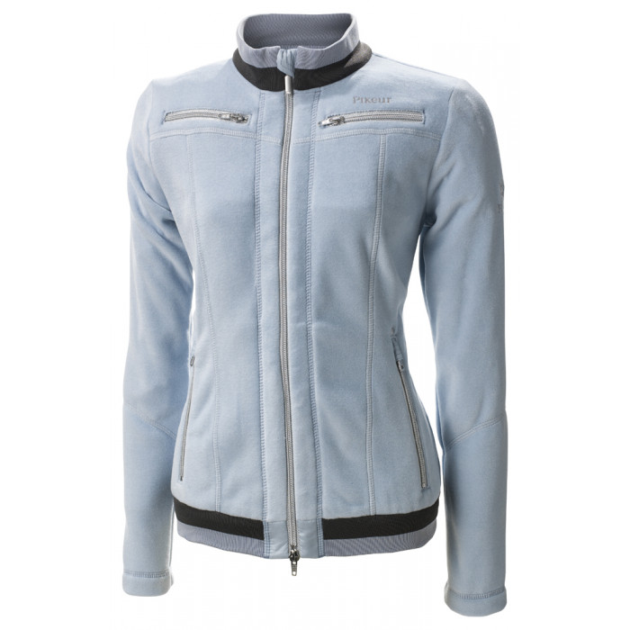 Puha, polár anyagú felső világoskék színben, cipzáros zsebekkel.