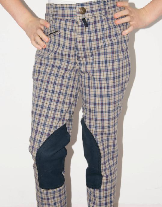Gyermek kockás lovaglónadrág, térdbőrös.