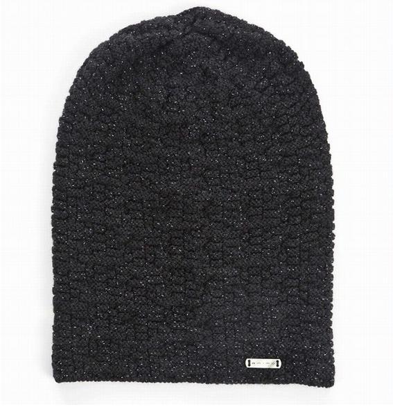 Női kötött sapka csillogó varrásokkal.