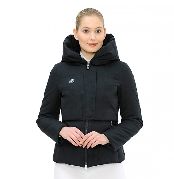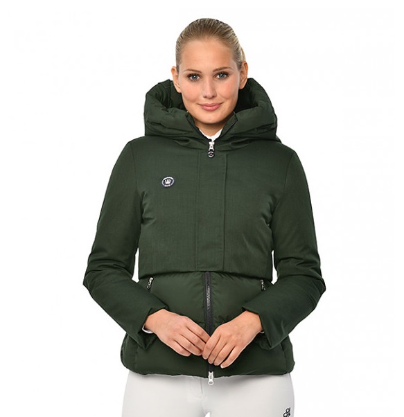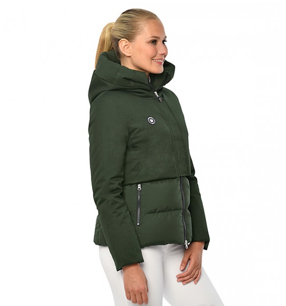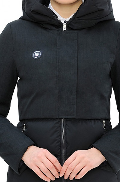 Steppelt női kabát, felső részén kontrasztos anyaggal.
