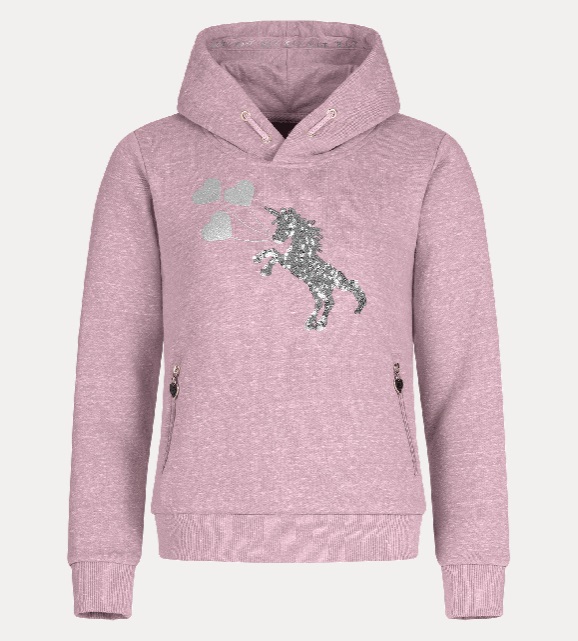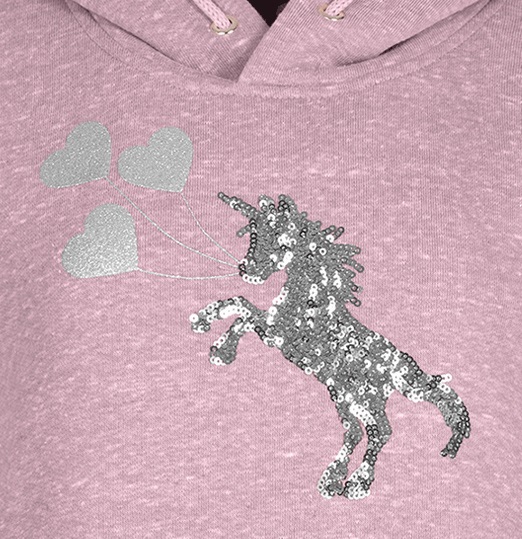 Kapucnis felső, mintával és flitterekkel díszítve.
