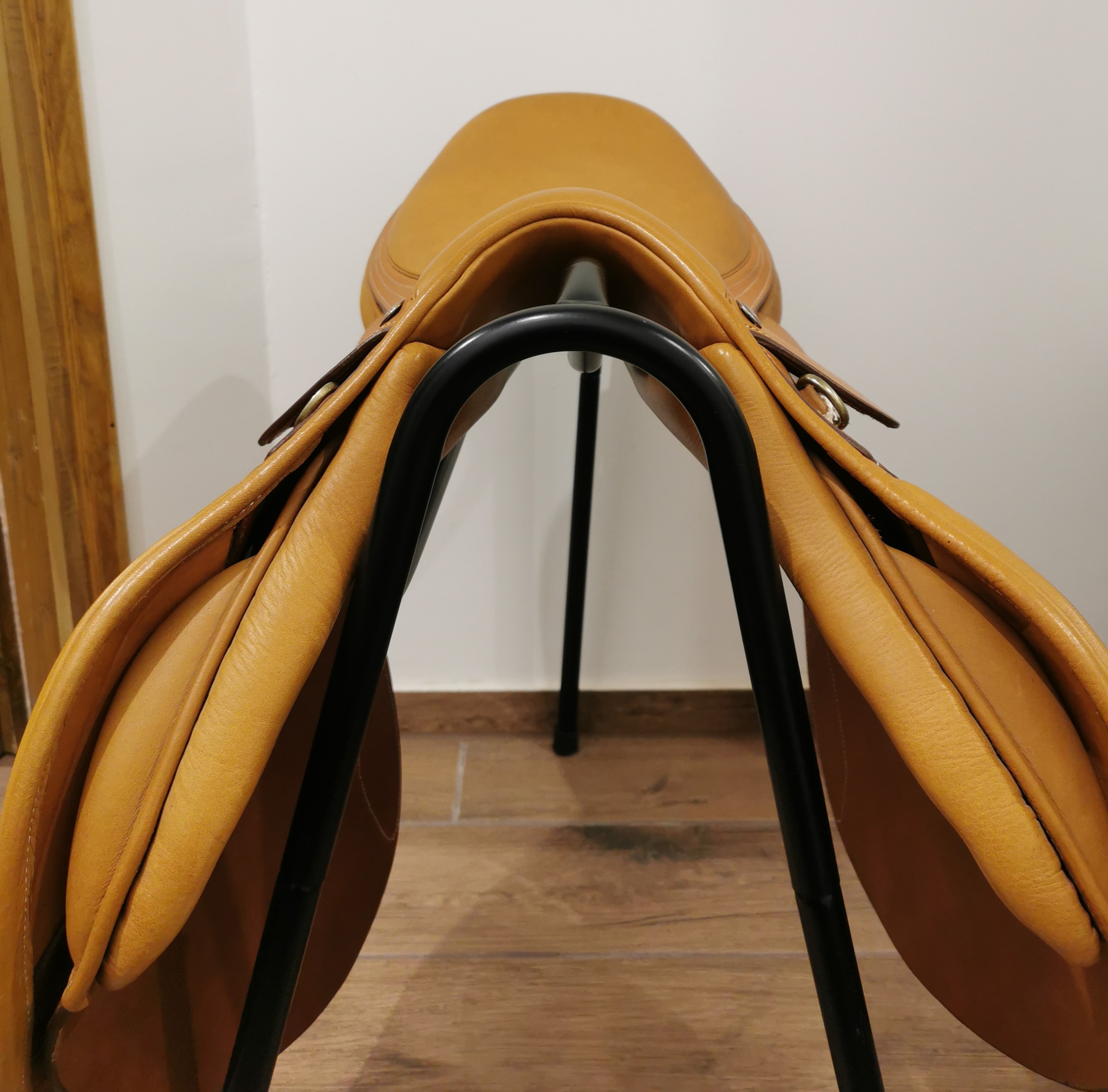 A nyereg különleges eljárással kidolgozott marhabőrből készült. Egyedi formájú fa vázzal rendelkezik.