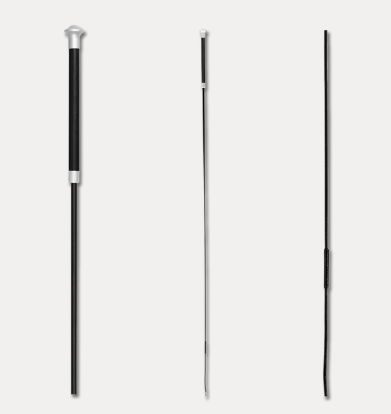 Első osztályú díjlovas pálca bőr fogóval és alumínium véggel.