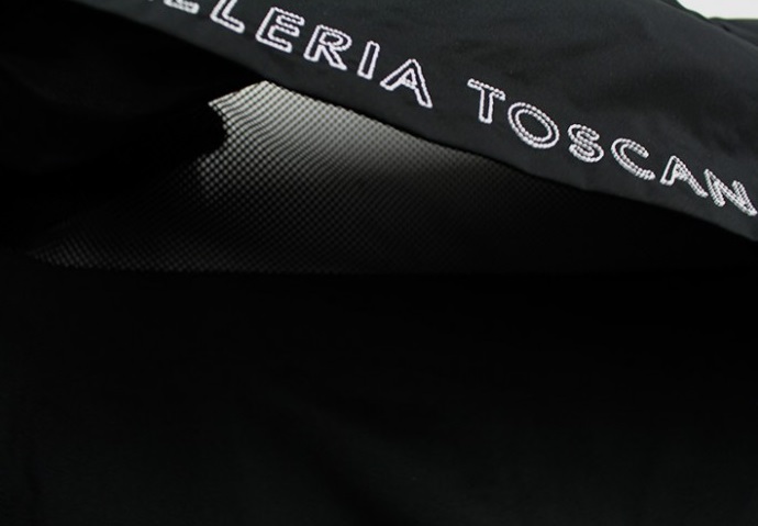 Hátán Cavalleria Toscana felirat. Alatta hálós szellőző nyílás.