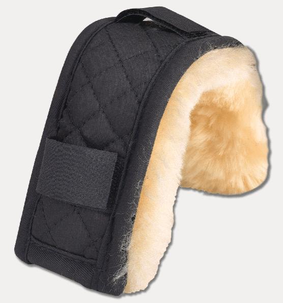 Puha bárányszőrrel bélelt védő orra/tarkóra.. Könnyen rögzíthető 3 tépőzáras rögzítővel.