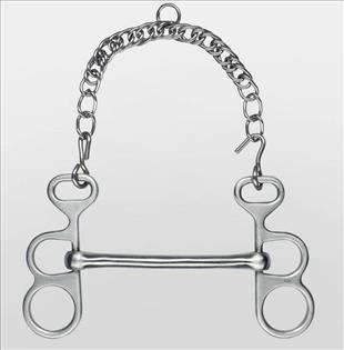 Anyaga rozsdamentes acél. Rögzített, vékony egyenes szájrészű acél lánccal ellátott fogatzabla.