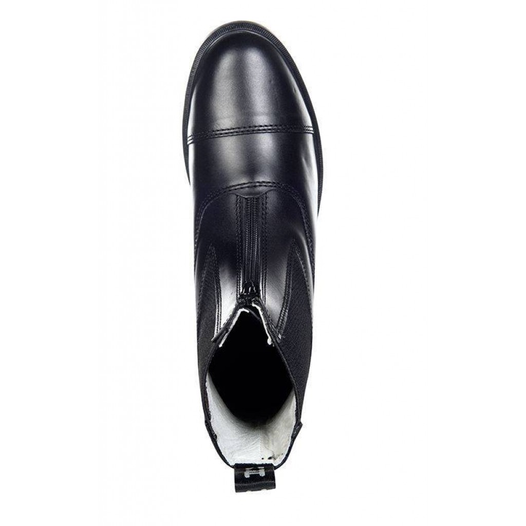 Elől cipzáros bőr cipő.
