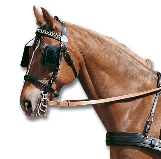 Strapabíró bőrből készült Waldhausen márkájú fogatos kantár szemellenzővel ellátva. Fekete színben kapható.