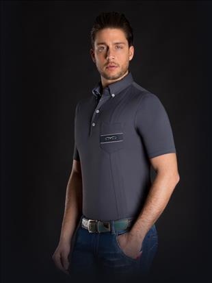 Férfi galléros póló, elől zsebbel. Könnyen száradó, jól szellőző anyagból készült, nem karcsúsított fazon.